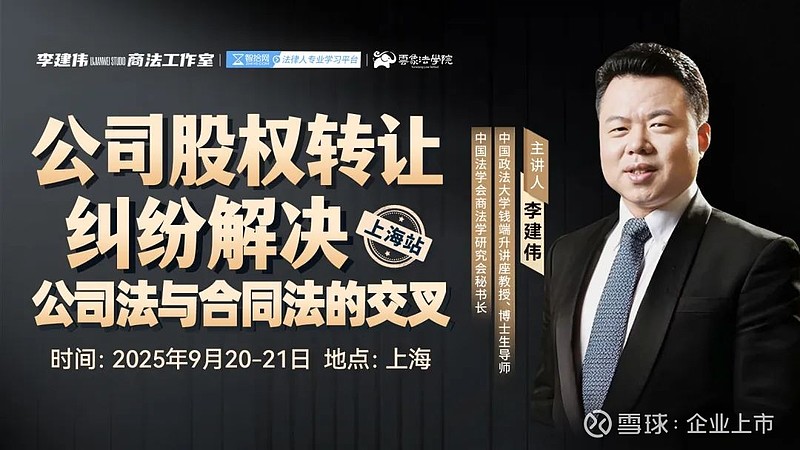 李建伟教授将通过大量真实案例,抽象规则转化为可落地的操作指引,呈现股权转让全流程的法律适用逻辑。