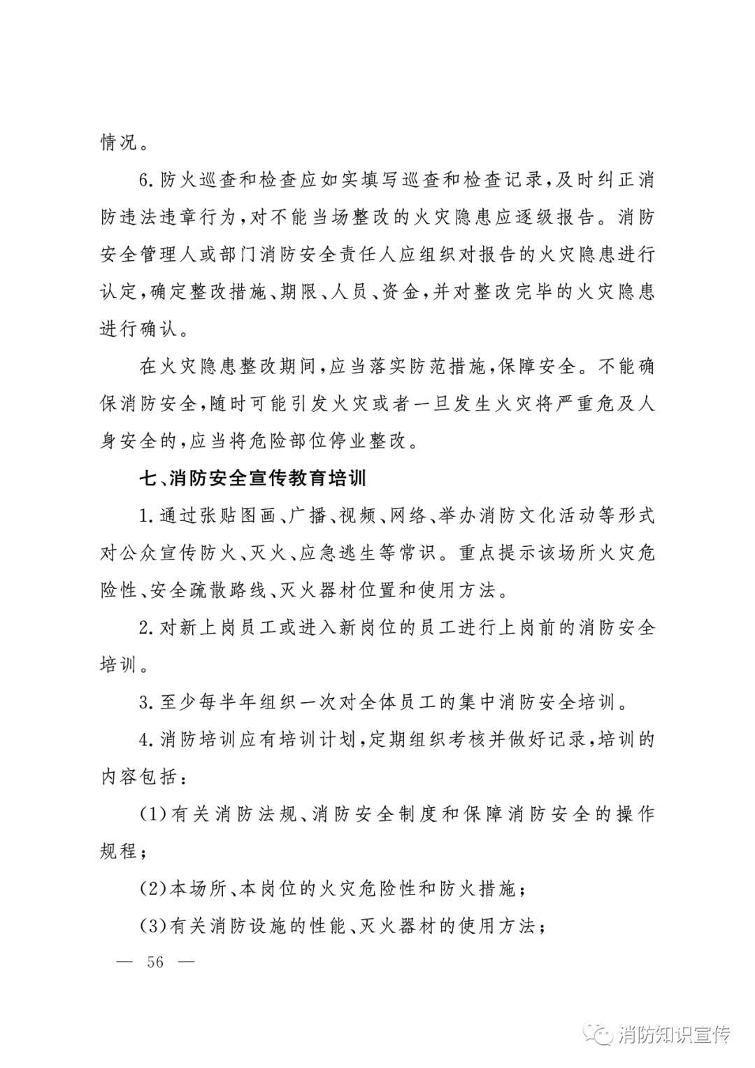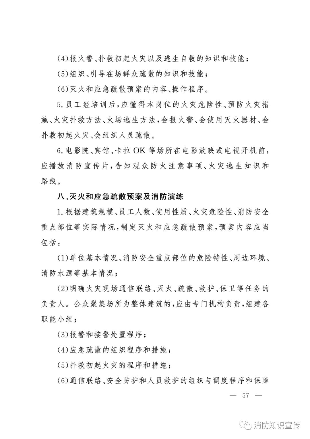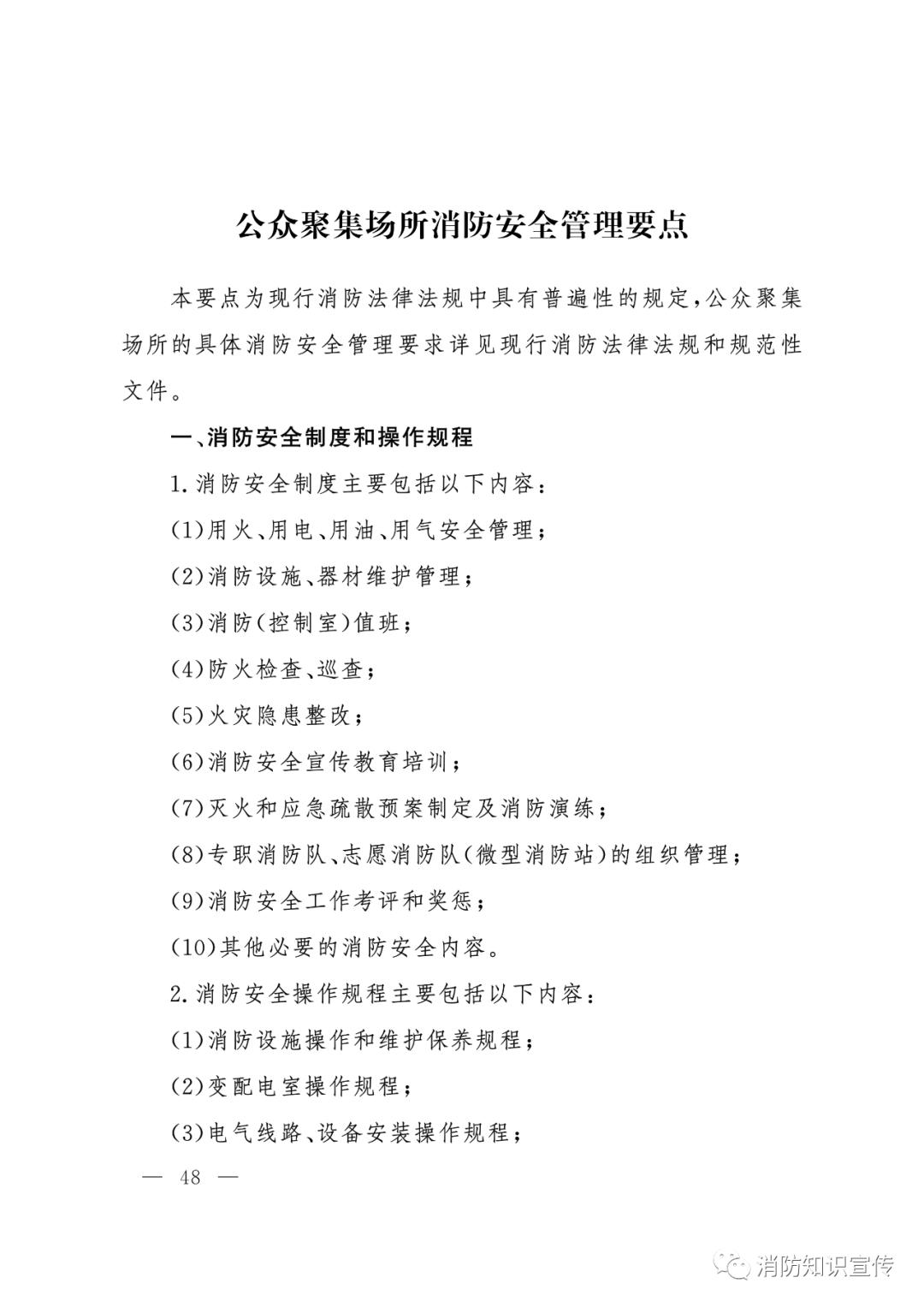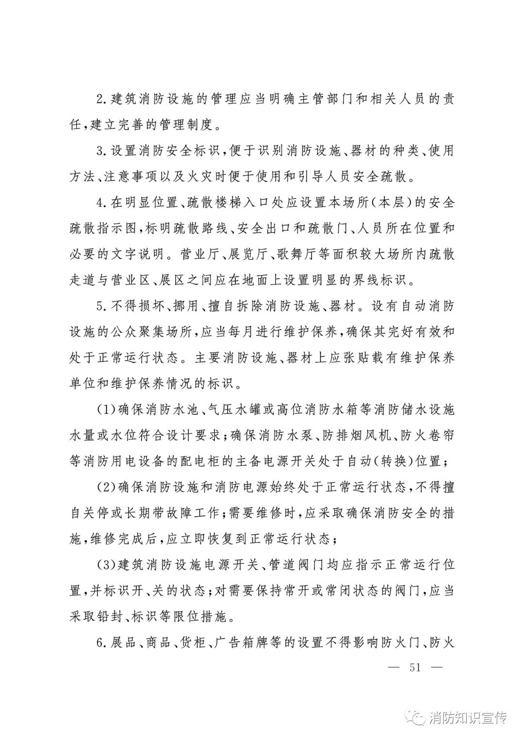 (四)公众聚集场所应当依法确定消防安全管理人,负责场所消防工作。消防安全管理人负责组织落实下列消防安全管理工作: