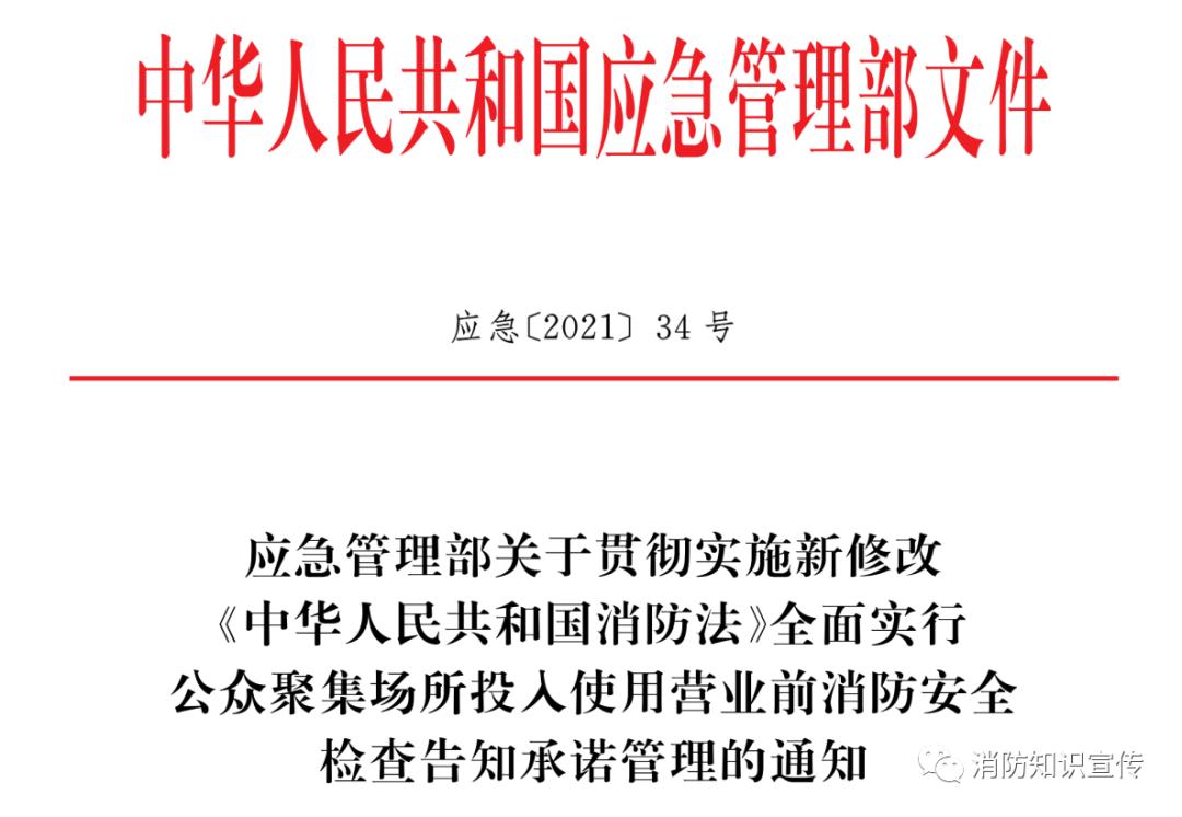 原标题:《公众聚集场所投入使用营业前消防安全检查全面实行告知承诺管理》