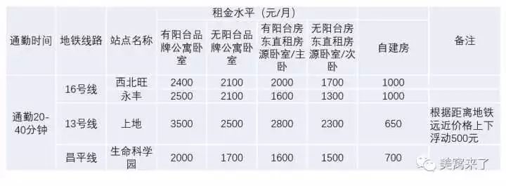 该区域整体房价较高,可能是因为挨着中国“硅谷”中关村,品牌公寓平均房租为3000以上,就算是不带阳台不朝阳的北卧,也要2500-3000,具体价格要看你所占据的平方米了。具体房租水平为: