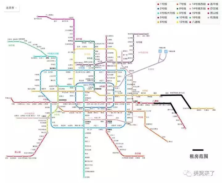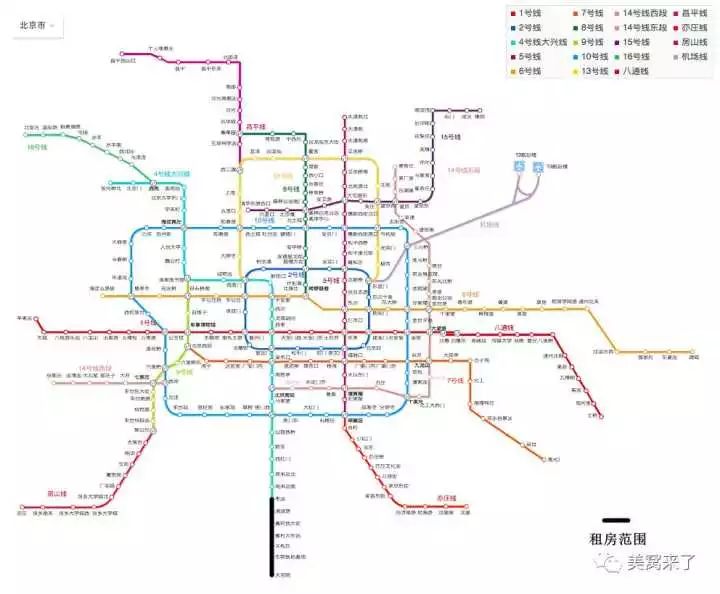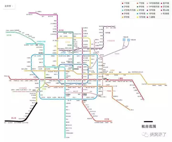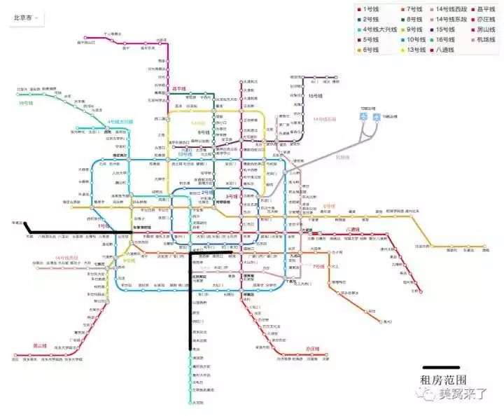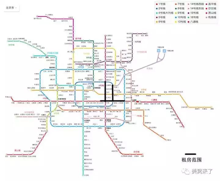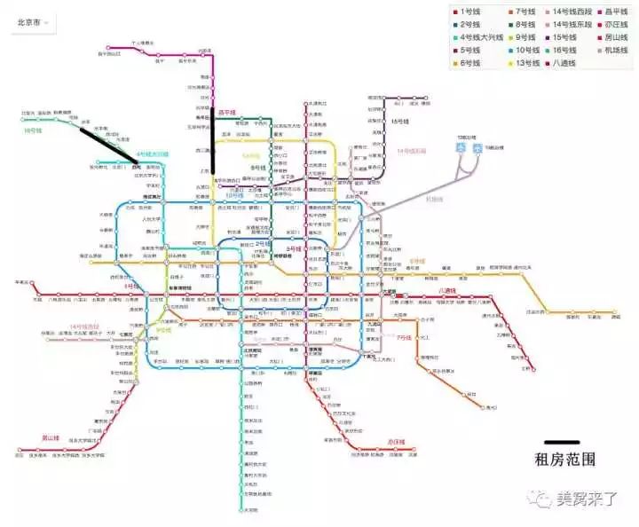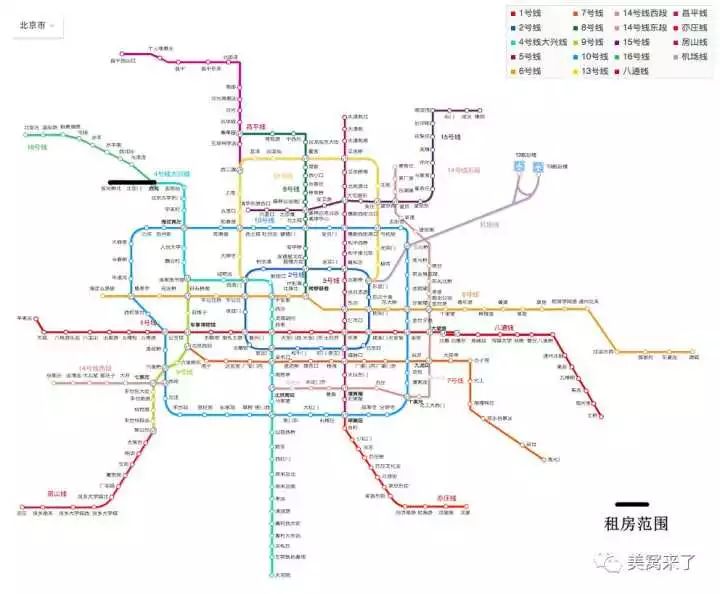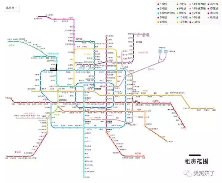 海淀区的工作集中在中关村,具体租房区域围绕地铁4号线、8号线、13号线、16号线以及昌平线展开,如下图所示: