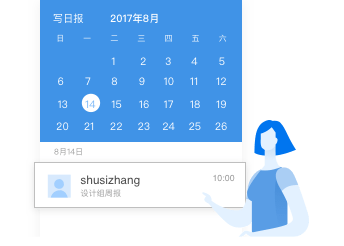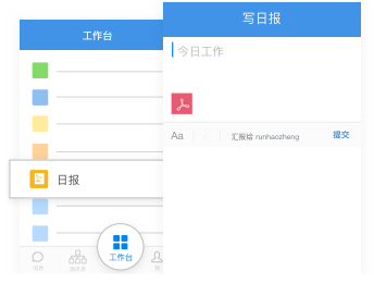 在工作台日报应用中定期提交日报、周报、月报,积淀工作成绩,支持手机和PC端撰写。