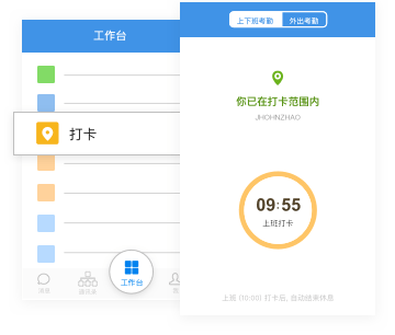 进入管理员设置的打卡范围后,打开手机进入工作台的打卡应用,完成打卡。