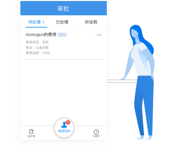 你还可以随时查看待我审批、我提交的、抄送我的审批单,审批记录随时可追溯。