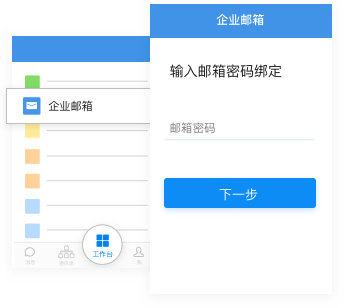 在工作台进入企业邮箱应用,输入工作邮箱或常用邮箱账号及密码完成绑定。