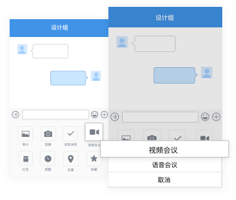 在群聊会话窗口点击加号,选中视频会议可立即发起高清视频会议。