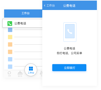 在底部栏的工作台中,选择公费电话,点击立即拨打即可。