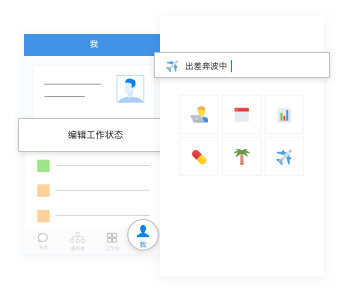 在底部栏选择我,点击个人名片下方编辑工作状态,点击图标或文字进行编辑。