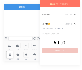 支持发送文字、语音、图片、表情、红包。