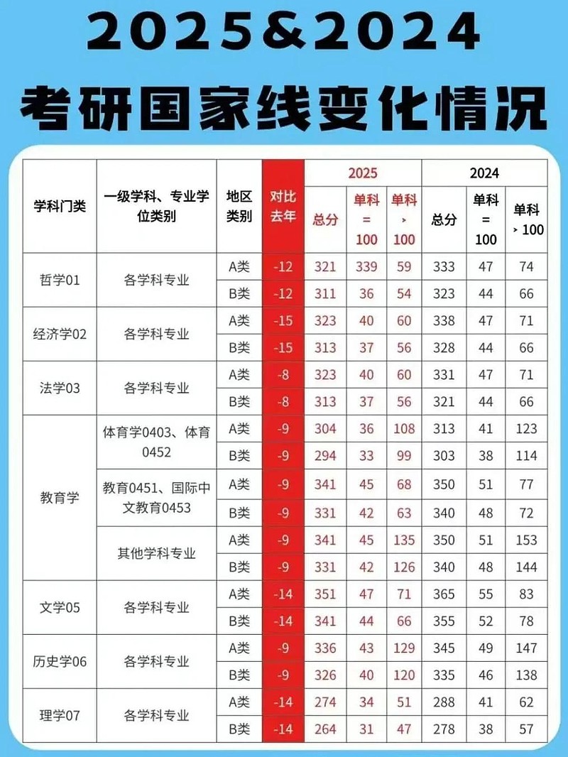 就在最近,往年都是三月中旬才公布的考研国家线,意外提前了半个月,不但时间“抢跑”,还上演了一场“全线大跳水”的戏码。除了军事学稳如泰山,其他学科门类的总分和单科分数线都像坐上了滑梯,一路下滑,甚至有些学科的国家线直接回到了8-9年前的“复古”水平。
