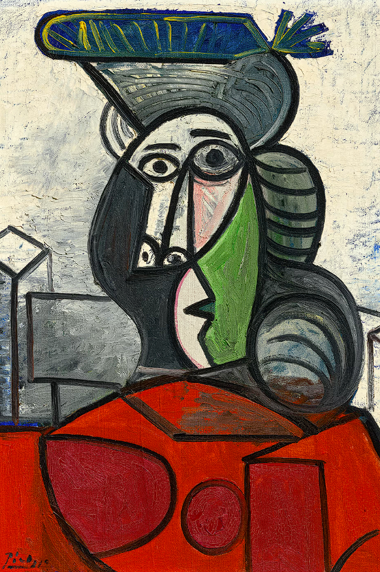据悉,该作品创作于1944年,以毕加索的情人、超现实主义艺术家朵拉・玛尔(Dora Maar)为原型,描绘她头戴标志性花帽、眼神深邃的形象。