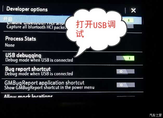 进入开发者选项以后点开开启就出现了下边的对话框,你继续往下翻出现USB调试界面点开就可以了