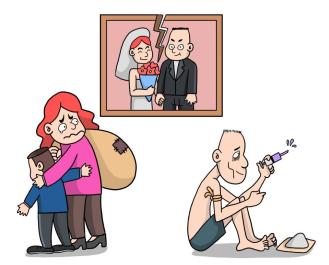 吸毒导致了大量的家庭悲剧,对毒品上瘾了就非常难戒掉,很多“瘾君子”都因为吸毒流离失所、妻离子散。