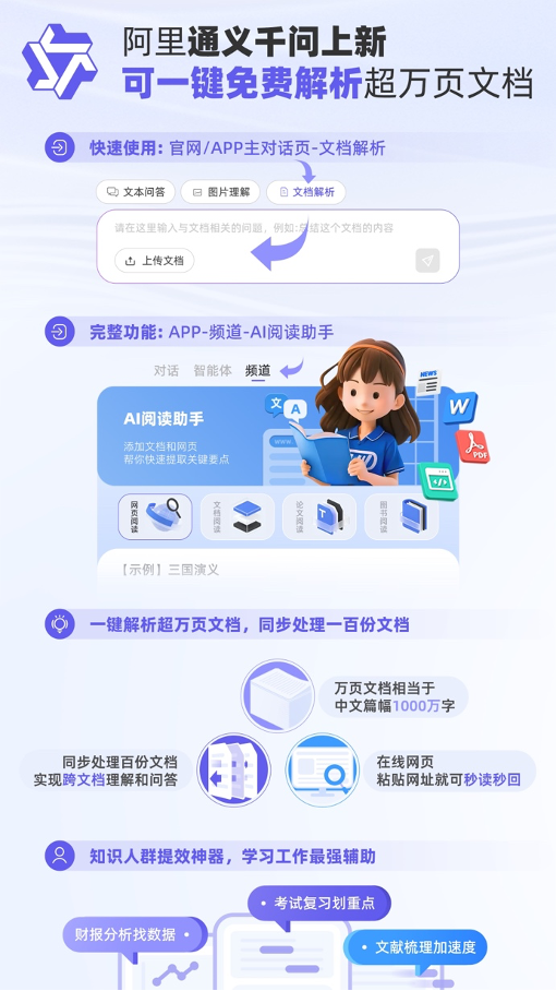 通义千问上新,可一键免费解析超万页文档、速读百份文档