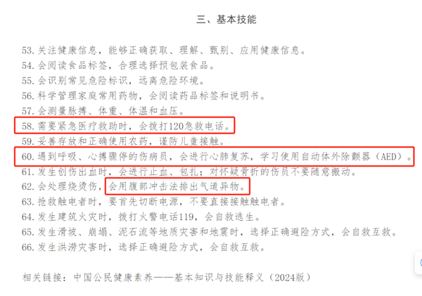 国家卫健委:中国公民健康素养 急救基本技能在其中
