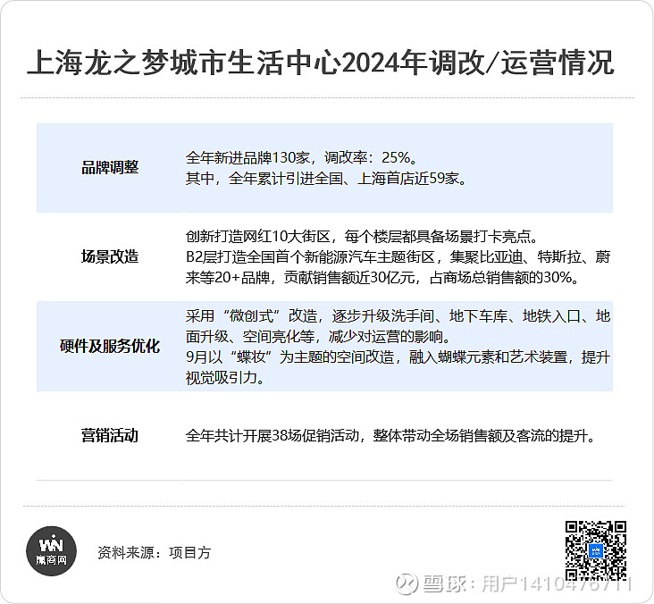 龙之梦自2021年起,率先打造全国首个新能源汽车主题街区,超5000平空间聚集20+汽车品牌,如今成为众多知名汽销品牌的首发首秀之地;“数字化”和“智能化”是创新发展的关键词,2024年引入占地机器人体验馆,邀请来“AI机器人”龙龙与人形机器人“小柒”坐镇;去年9月起,全场开启“蝶变”焕新升级,针对不同业态对各楼层进行街区化打造,规划“玫瑰花园”“科技未来”“国潮古风”三大新主题街区,且陆续对商场各入口、洗手间、地下车库等区域进行翻新改造。