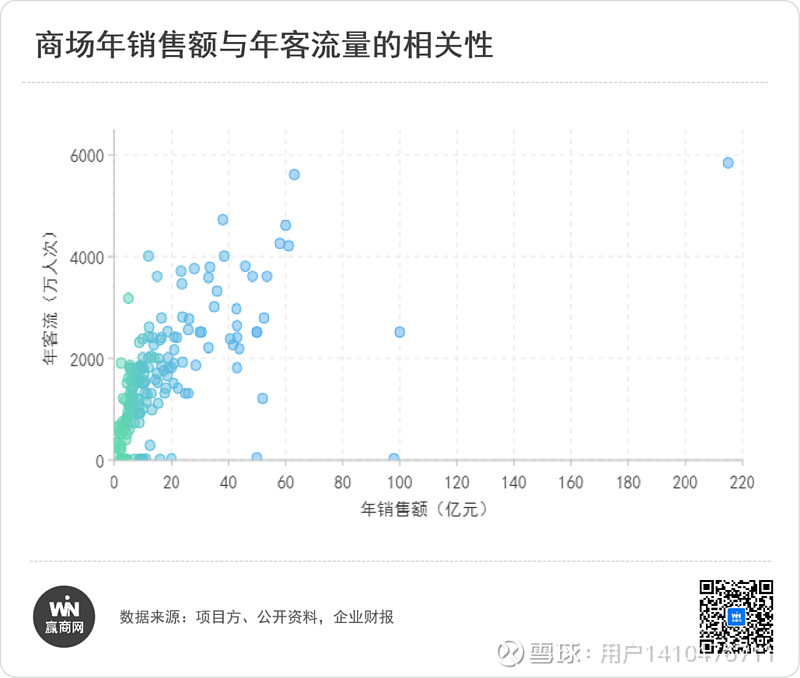 ▶▶ 销售额和客流明显呈正相关性,销售额在20-50亿区间的商场更依赖客流:在216家商场的179个可比样本中,客流量主要集中在1000-2000万人次,占比近5成。此外,客流量对20-50亿以内的商场的销售额影响更大,更需要高客流来带动销售。