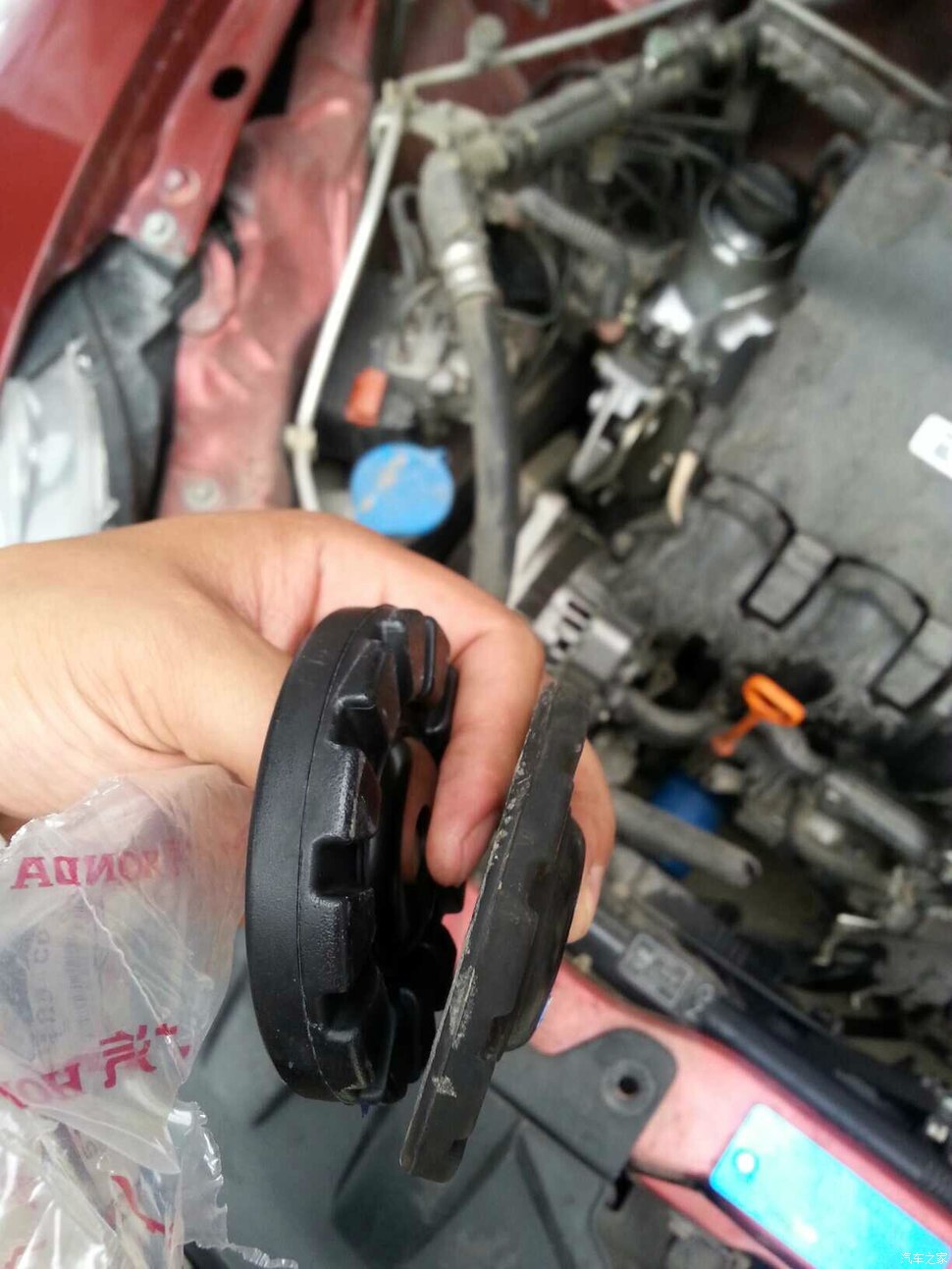 另外一直以来都认为是顶胶老化有松动的感觉,所以这次也买了新顶胶回来更换,顺便根据论坛车友的建议买了本田飞度的限位垫,拆下来后发现,虽然跑了15万多公里,其实顶胶还非常的好,根本不用更换,有磨损的只是限位垫而已。大家看图就知道了