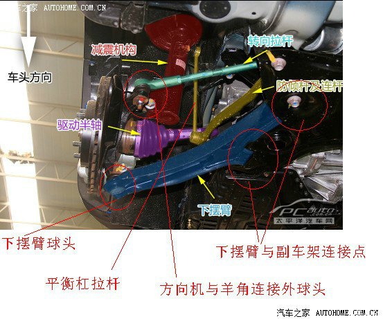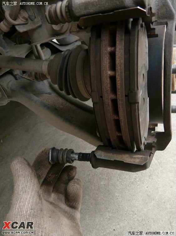 sjzhcxh发的帖子零费用解决方向机异响的配图(觉得方向机有异响按该方案解决即可,非常的详细和直观),开裂的地方就是图中下摆臂与副车架连接点的地方(最右带螺丝那个地方),这个部件有单独卖的,网购叫做(三角臂胶套),使用一定年限的车大家在升起车子检查底盘时就可以检查该部件是否老化开裂了,虽然有单独的配件卖但是因为一般来说普通维修厂没有压力机设备不能拆除旧的胶套也不能重新安装进去,所以最保险的办法是整个更换,另外这个时候还可以随便检查下摆臂球头及方向机与羊角连接外球头是否漏油或者松动,用手抓住刹车盘用力摆动就可以看到是否损坏了,很直观!可以自己检查。另外可以顺带解决卡钳异响,参考车友lovesrg发的帖子中的配图