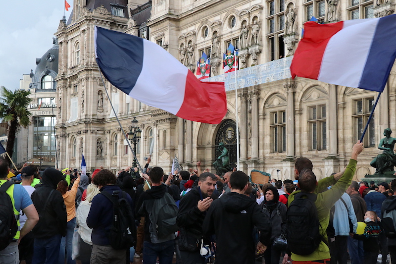 2021年8月7日,法国巴黎,法国23.7万人参加游行活动,反对健康通行证,其中巴黎有1.7万人参与。
