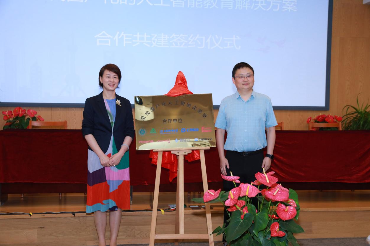 上海师范大学分析测试与超算中心主任王龚与上海浦东软件园股份有限公司党委书记、总经理聂影为“全栈国产化人工智能实验室”揭牌,标志着这一集教学、科研、转化为一体的创新平台正式启用,该实验室将作为人工智能课程教学、实践探索和成果展示的重要基地,助力学生掌握前沿科技知识,培养创新能力。