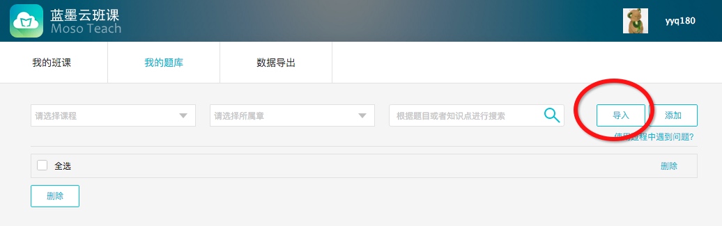 请前往云班课 Web 版:,登录之后,进入“我的题库”: