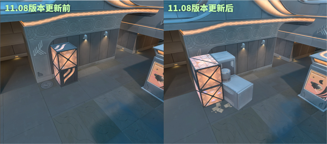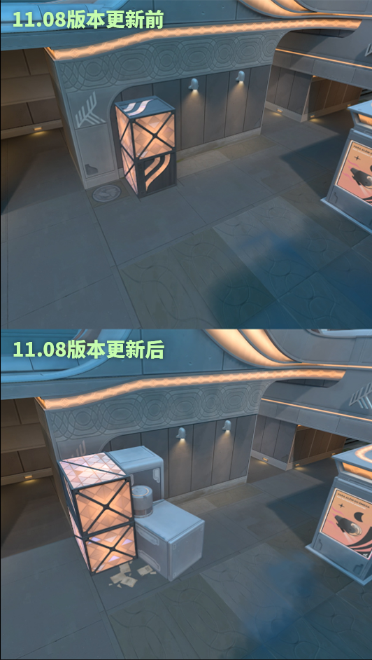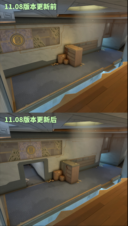 B区:移除了B区长廊的远距离射线视角 - 这个角度让英雄可以在安全距离下仍维持对部署区的强大控制力