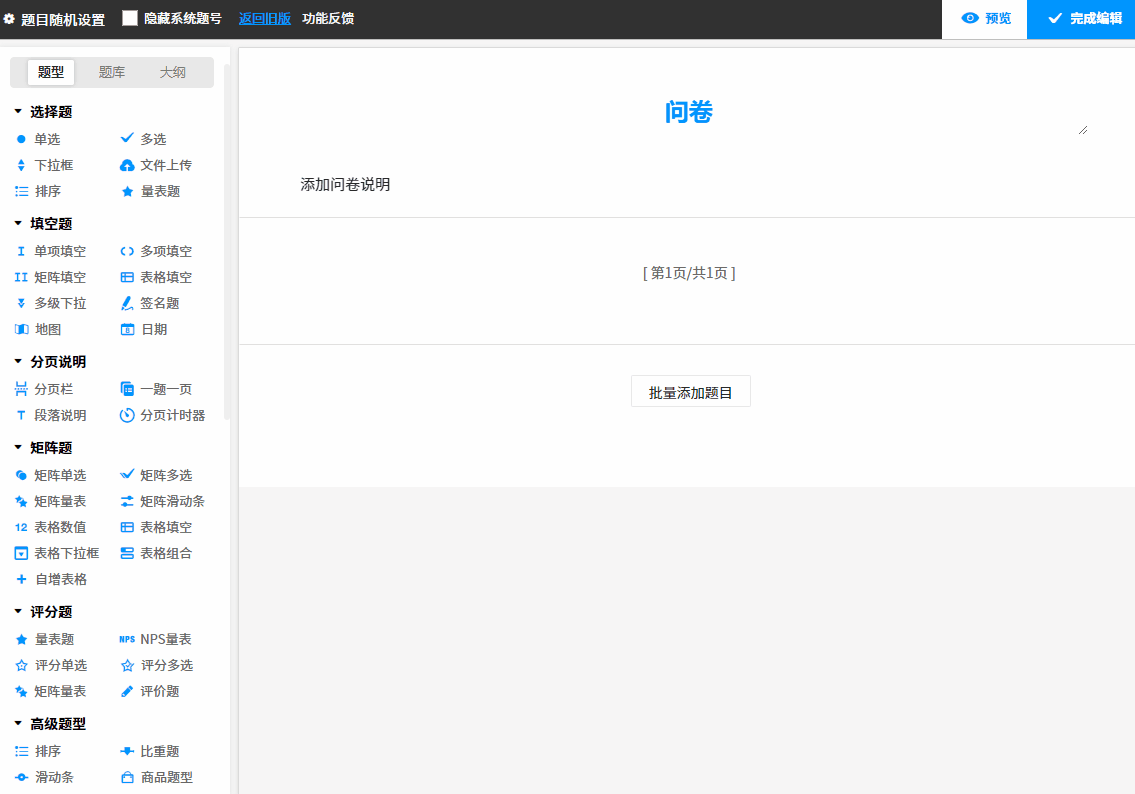 步骤三:添加和编辑完所有的题目之后,点击“完成编辑”并发布问卷;