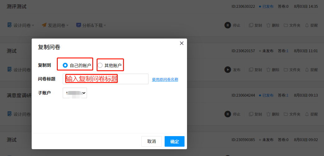 步骤四:发布之后生成问卷链接,将链接复制给填写者作答;