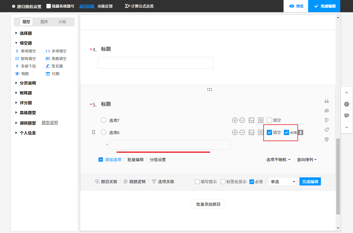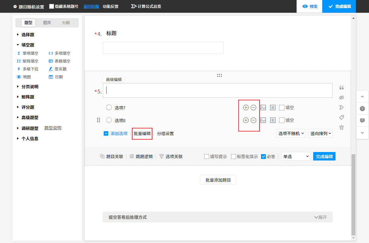 矩阵题(有多个小题,每个小题的选项相同,可选择矩阵题)