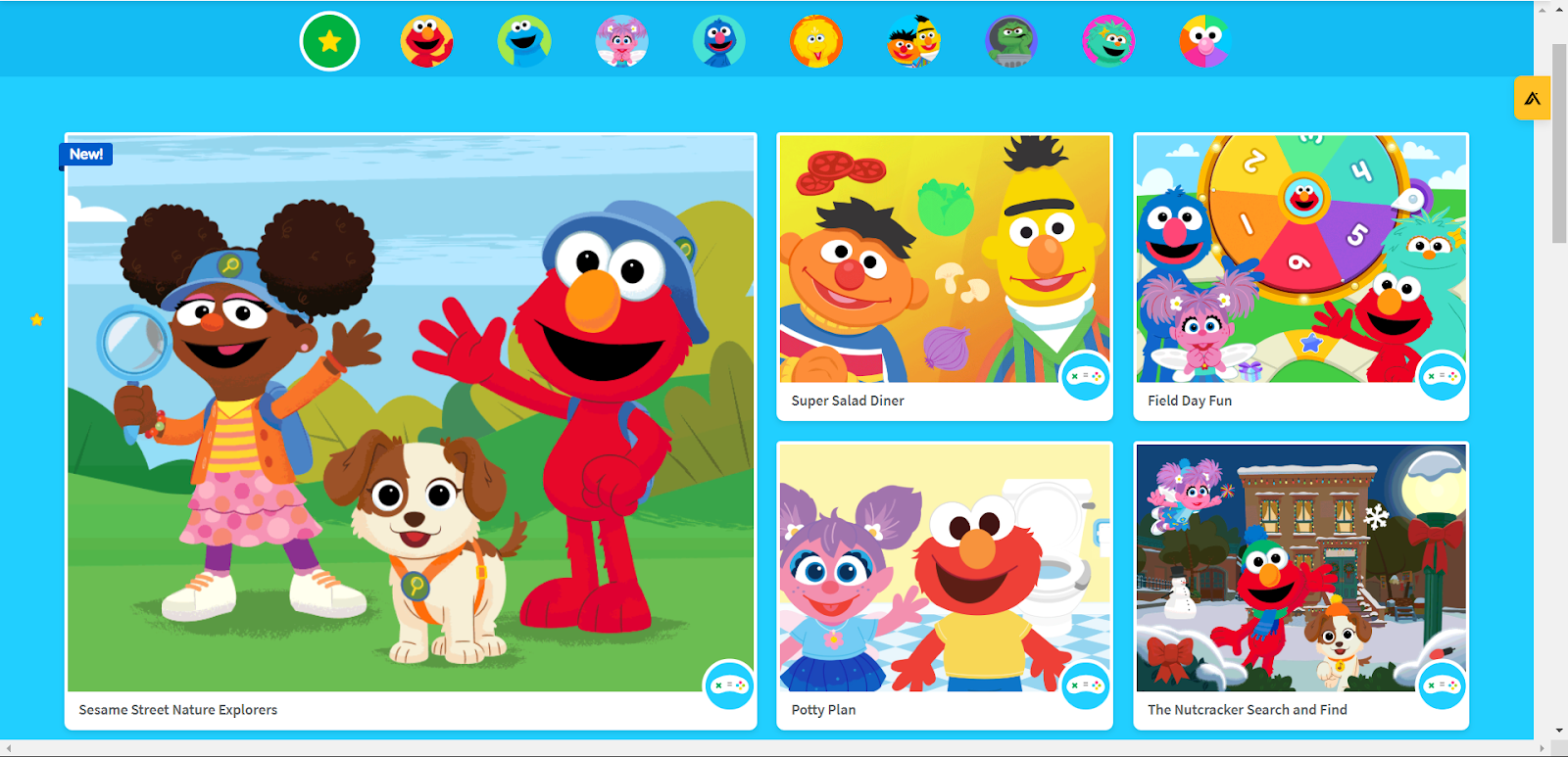 芝麻街 “提供互动视频、游戏和活动,主角是 Elmo、Big Bird 和 Cookie Monster 等深受喜爱的角色。该平台帮助幼儿发展识字、算术和社交情感技能,涵盖善良、友谊和多样性等主题。家长和教育工作者还可以找到有关儿童发展和早期学习策略的资源。