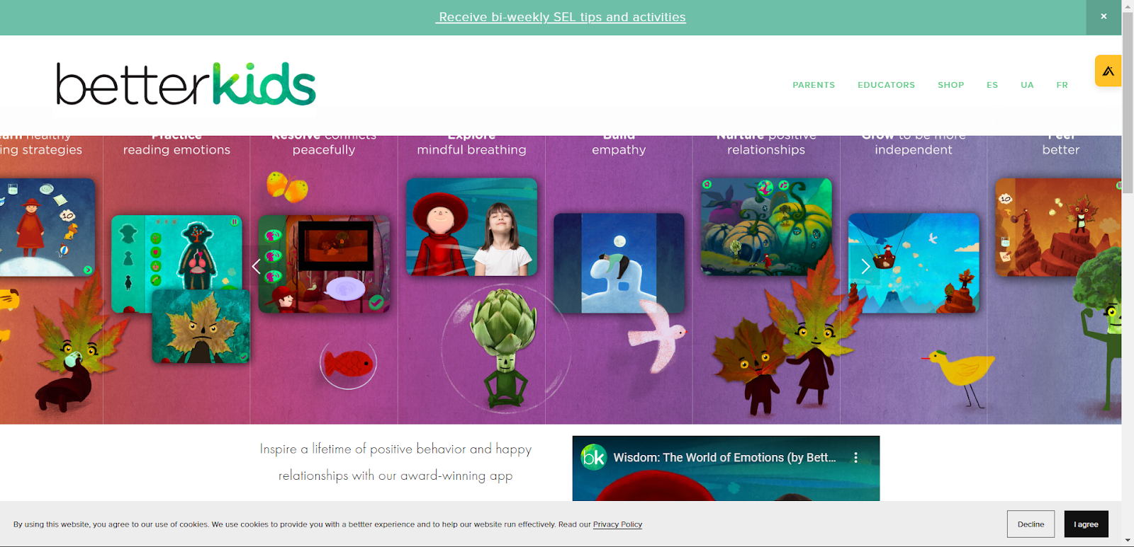 Better Kids提供 “智慧:情绪世界 “是一款互动应用程序,可帮助儿童通过游戏开发情商。该应用程序以一个奇特的世界为特色,孩子们在这里进行冒险,学习不同的情绪、换位思考和解决问题。它旨在以一种有趣和吸引人的方式支持社交情感的成长。
