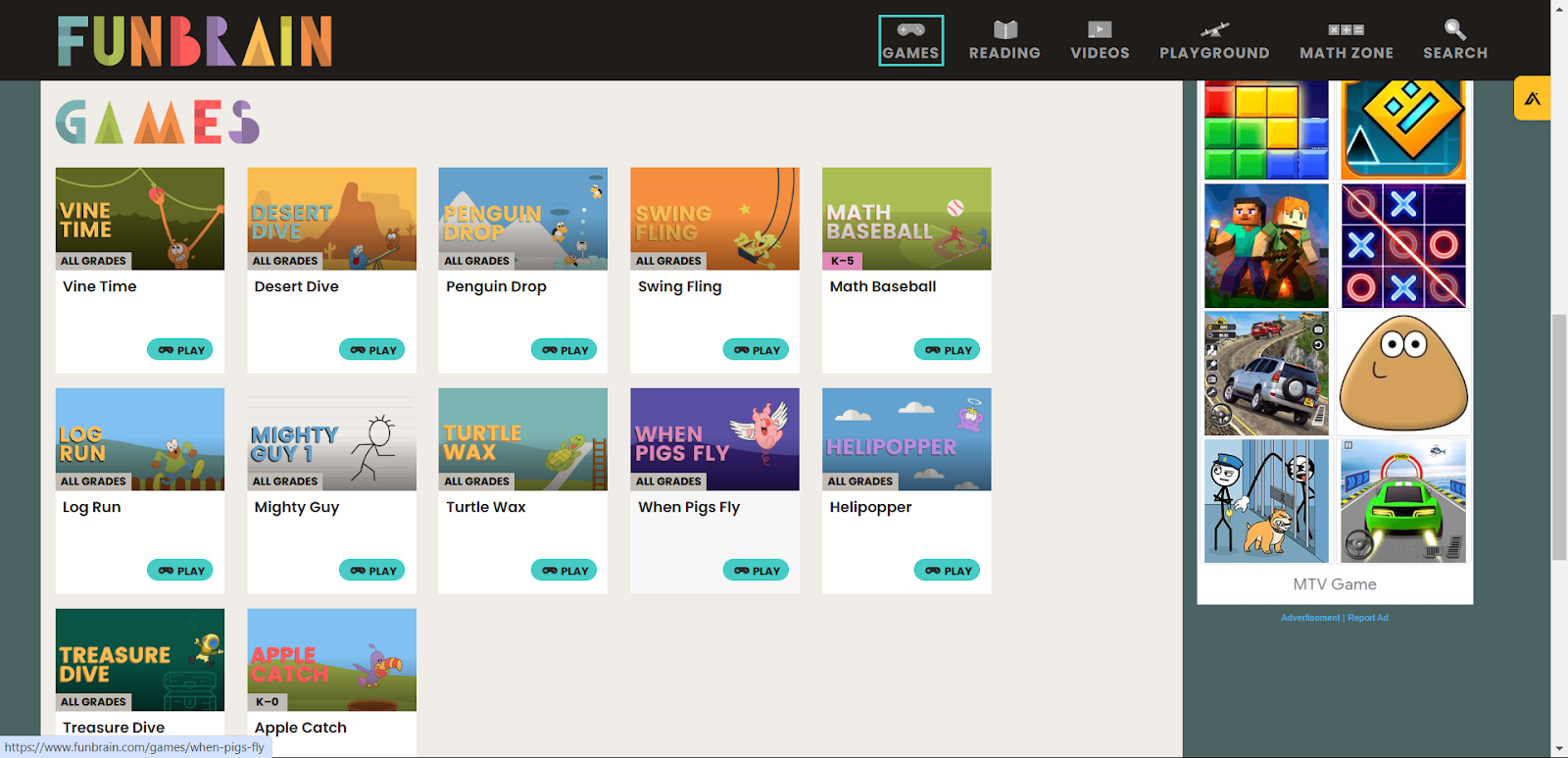 Funbrain提供引人入胜的教育游戏、书籍和视频,旨在让学习数学、阅读和解决问题充满乐趣。孩子们可以探索各种技能培养活动,包括互动数学谜题、语法挑战和《小屁孩日记》等数字图书。