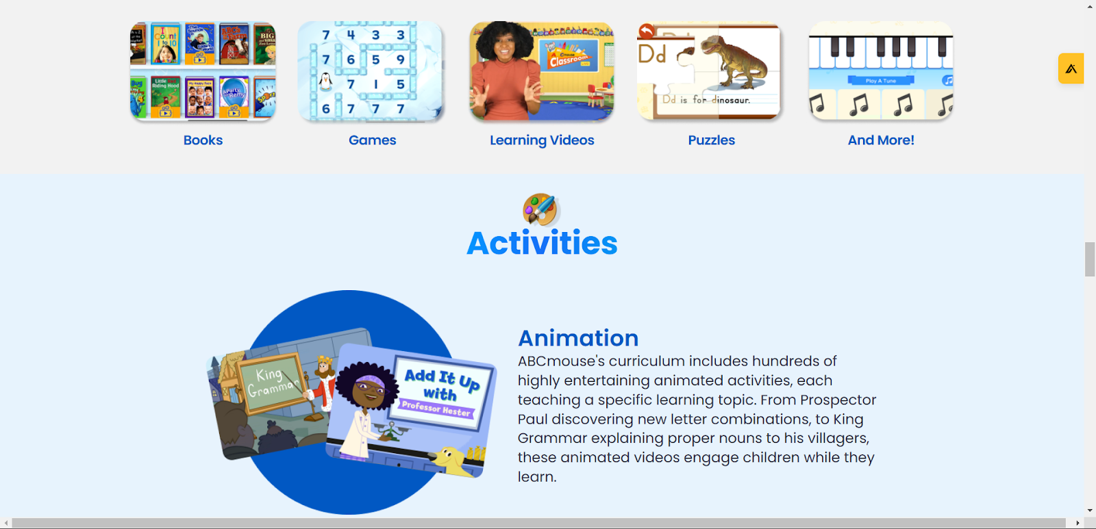 ABCmouse提供全面的早期学习课程,通过 10,000 多个互动活动涵盖阅读、数学、科学和艺术。阅读课程包括语音课程、数字故事书和词汇练习,旨在帮助幼儿逐步提高识字能力。通过结构化、游戏式的学习路径,ABCmouse 可适应儿童的学习进度,并提供奖励以保持高昂的学习动力。