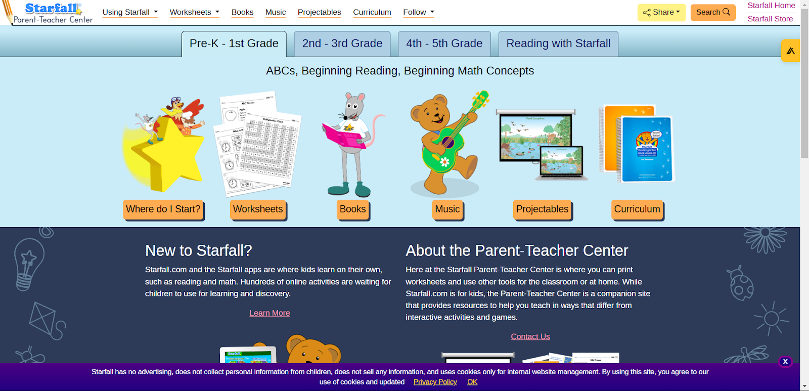 Starfall是一个互动式语音和识字平台,通过动画歌曲、故事和活动帮助儿童学习阅读。程序从字母识别开始,逐步过渡到造句和阅读理解。除识字外,Starfall 还提供基础数学资源,是早期学习者的全面学习工具。
