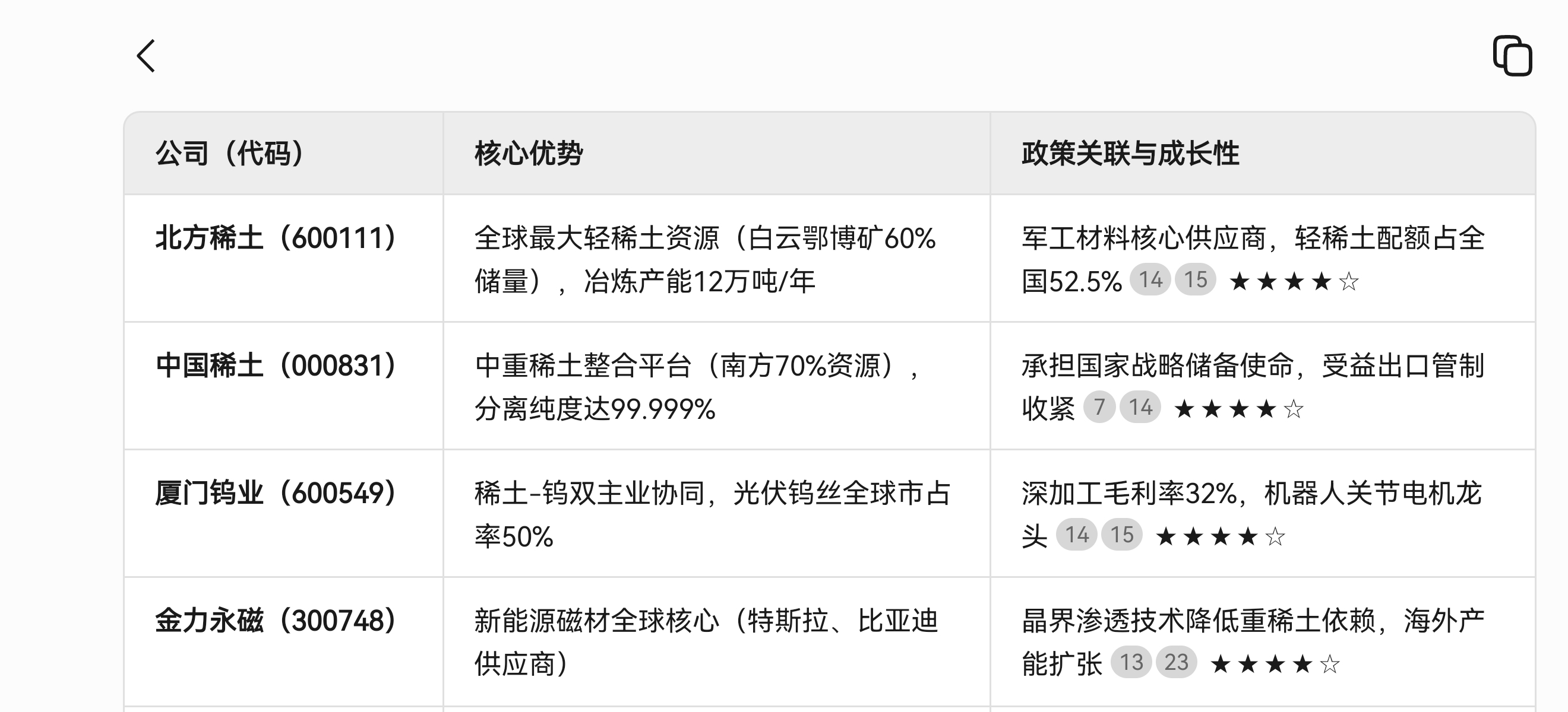 二、核心龙头股名单:资源、技术与政策红利三重受益