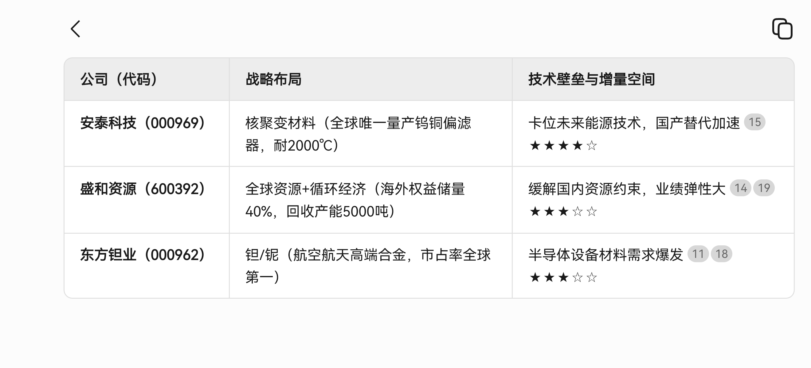 - 技术迭代红利:低重稀土磁材、核聚变材料等创新突破,推动企业从“资源依赖”转向技术溢价。