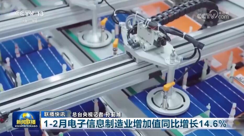 1—2月电子信息制造业增加值同比增长14.6%