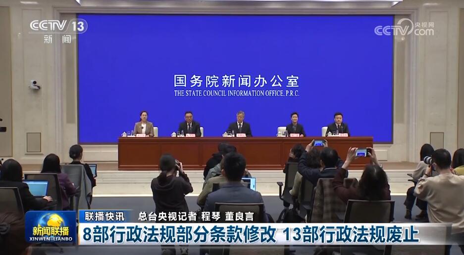 国务院新闻办今天(3月29日)举行政策例行吹风会,司法部和国家市场监督管理总局有关负责人介绍了《国务院关于修改和废止部分行政法规的决定》,该《决定》修改了《企业信息公示暂行条例》8部行政法规的部分条款,废止了《煤炭送货办法》等13部行政法规,自2024年5月1日起施行。