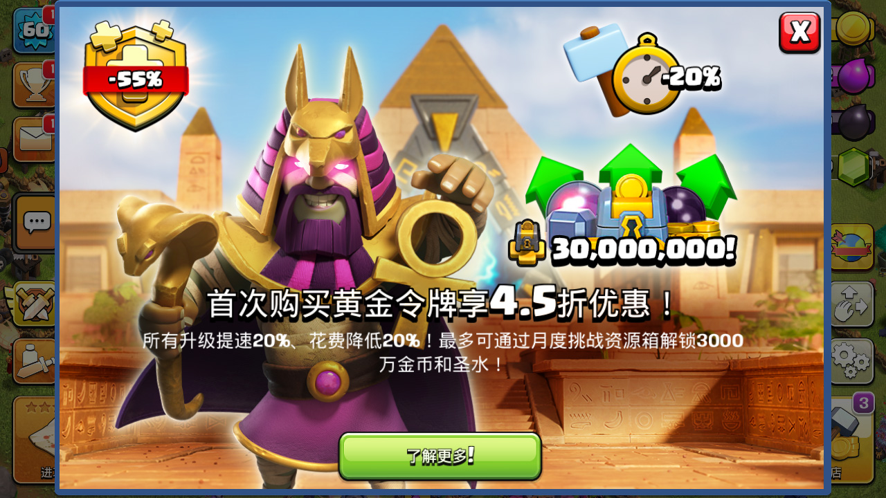 国服还有个钻石月卡(又称限定令牌),售价 60 元,略低于游戏内 9.99 美元那一档。钻石月卡只是多一个工人而已,机制和本文中的黄金令牌类似。鉴于这不是国服的网站,本文不详谈。
