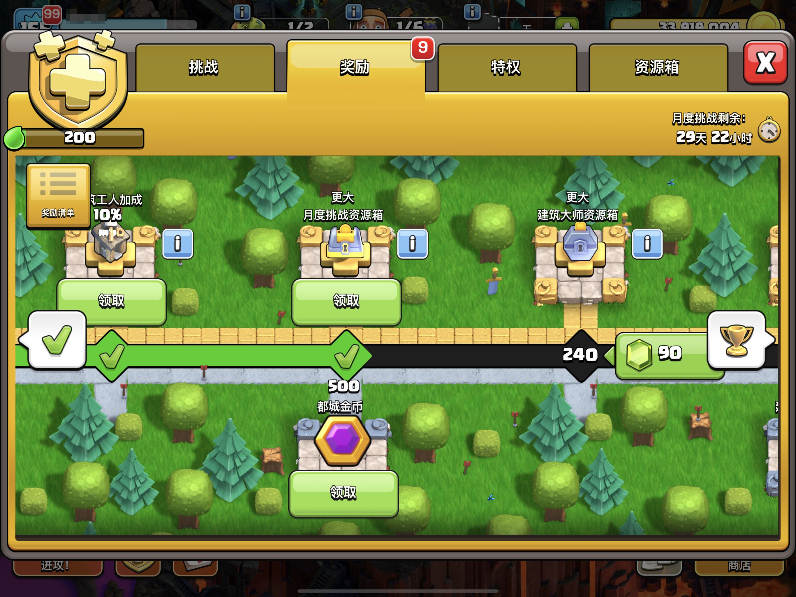 部落冲突月度挑战 (月卡、黄金令牌) 机制详解