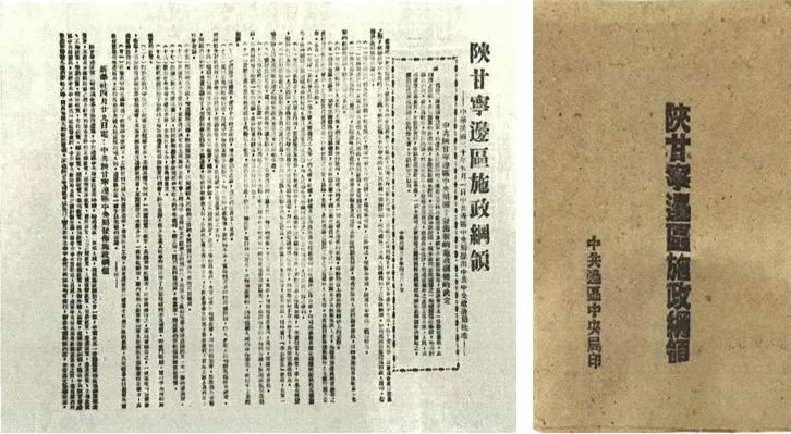 陕甘宁边区中央局印制的《施政纲领》及其发布公告。图源:中国国家博物馆