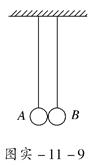 某同学利用如图实-11-9所示的装置验证动量守恒定律.图中两摆摆长相同,悬挂于同一高度,A、B两摆球均很小,质量之比为1∶2.当两摆均处于自由静止状态时,其侧面刚好接触.向右上方拉动B球使其摆线伸直并与竖直方向成45°角,然后将其由静止释放.结果观察到两摆球粘在一起摆动,且最大摆角成30°.若本实验允许的最大误差为±4%,此实验是否成功地验证了动量守恒定律?