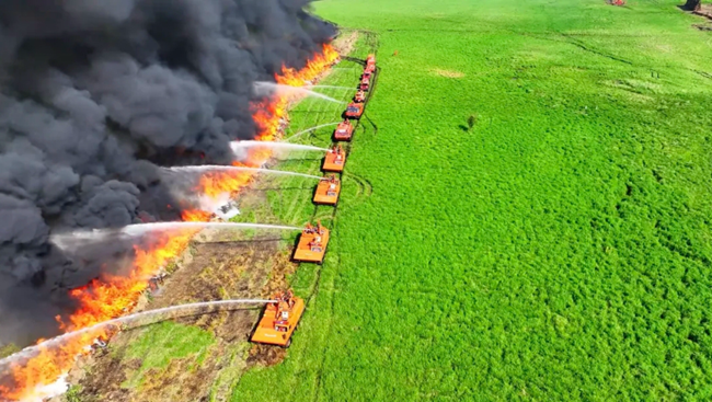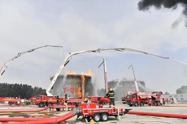 从火情侦察到精准灭火,从危情处置到安全防护,各科目紧密衔接、配合默契,展现出先进装备与科学战术的强大威力,为应对真实储罐火灾爆炸事故积累了宝贵经验,也为守护我国油品战略储备安全注入一剂“强心针”。