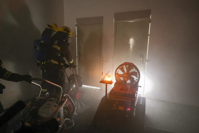 在“破拆排烟与外部控火”环节,无人机携带破玻弹击碎玻璃幕墙排烟;灭火无人机、举高喷射消防车等形成“立体火力网”压制火势;自动移车机器人清理障碍物,开辟“生命通道”。“内攻登高与供水灭火”是最危险的攻坚行动。消防员穿戴有源外骨骼装置,借助模块化伴随机器人,负重攀爬数十层楼梯内攻;屏风水枪、便携式移动炮等装备齐上阵,扑灭室内明火;高效水驱动排烟机、阻燃材料封堵竖井、孔洞,切断火势与烟雾蔓延路径;高层供水消防车通过竖管将灭火剂源源不断地输送至火场。