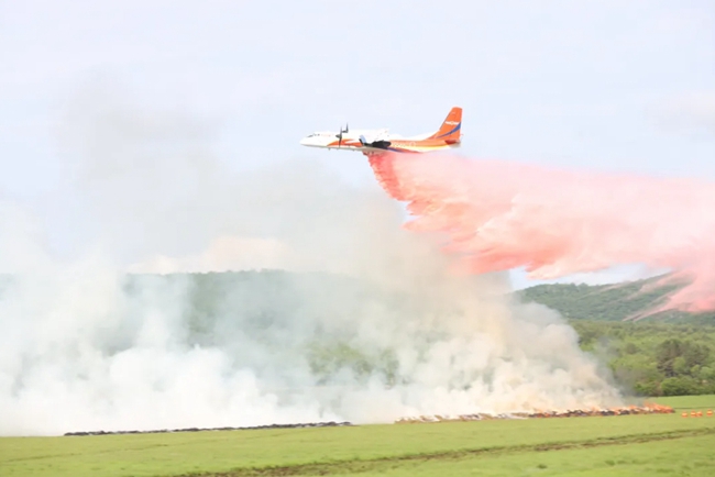 同时,AG-600、新舟60、AT-802等固定翼灭火飞机从低空掠过,如同一道道“水龙”洒下甘霖;K-32型、直-8型直升机吊桶洒水、空投吨级灭火弹和灭火阻燃剂,从空中对火势进行压制,与地面力量紧密配合,将火魔彻底“降服”。