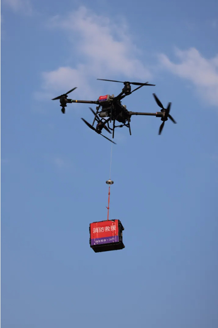 “疏散与搜救被困人员”是与死神的赛跑。参演单位采取多渠道定位技术锁定被困者位置,消防智能头盔与机器人联动,为被困人员规划逃生路线;大载重无人机、直升机、电动垂直起降飞行器组成“空中救援梯队”,向楼顶投送防火毯、呼吸面罩等物资,将被困人员安全转移。