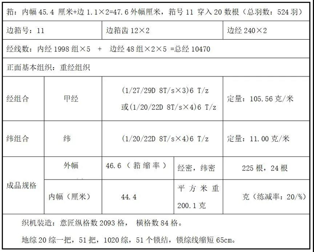 根据以上测试数据,经综合整理,制定织物的规格如下表(表1)。