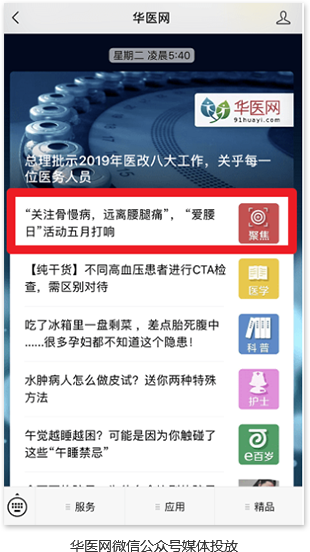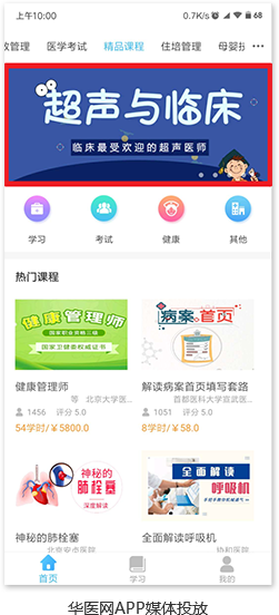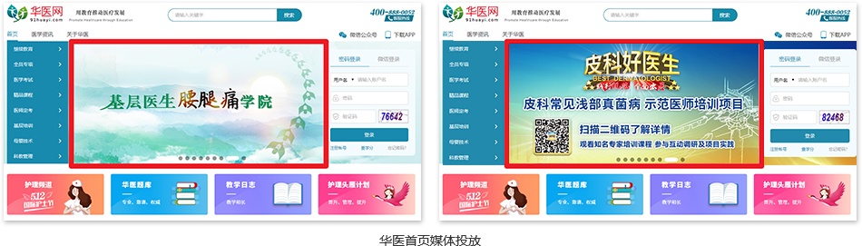 可在华医网首页、微信公众号、APP等位置进行媒体投放。