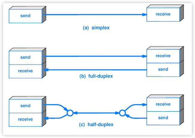 根据双方信息交互的方式,通信可划分为单向通信(或单工通信),双向交替通信(或半双工通信),双向同时通信(全双工通信)。